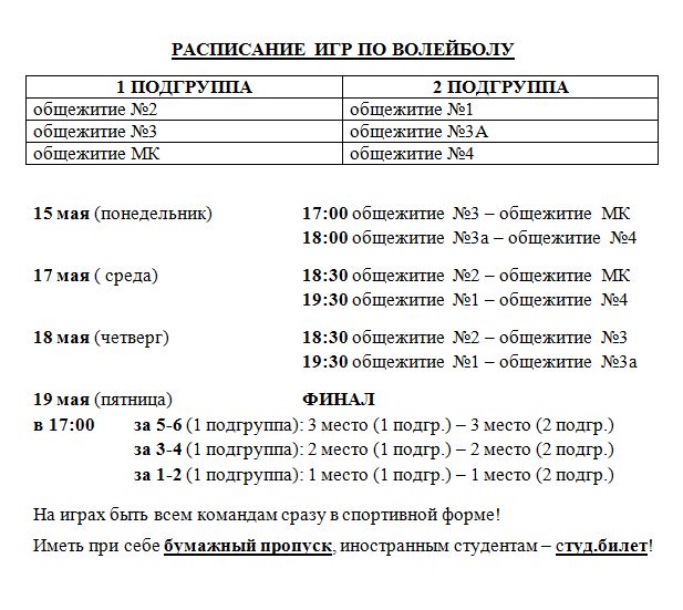 Спартакиада общежитий: игры по волейболу, 15 мая 2023 г.