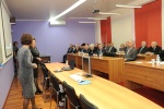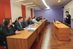 Перед участниками мероприятия выступил ректор вуза С.В. Тарарыкин, который рассказал, что аудитория предназначена для защиты диссертационных работ, проведения занятий факультета повышения квалификации преподавателей, а также презентаций и конференций.