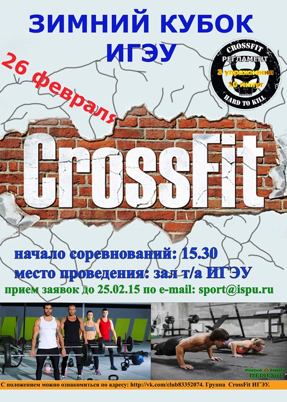 Приглашаем на Зимний кубок ИГЭУ по CrossFit, 26 февраля в 15:30 (зал тяжелой атлетики)