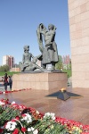 У Вечного огня была объявлена минута молчания, состоялся митинг в память о подвигах воинов Великой Отечественной войны. На площади Победы молодые люди зажгли свечи и возложили цветы в память о тех, кто погиб, защищая Родину.