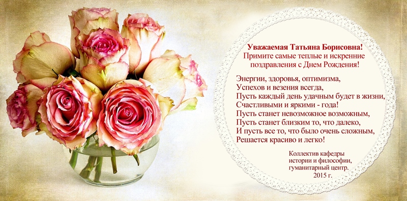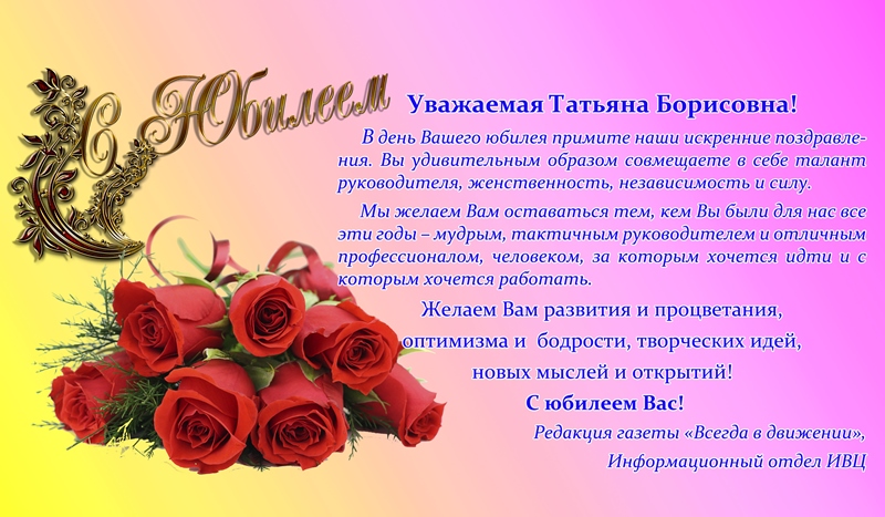 Поздравляем с ЮБИЛЕЕМ Татьяну Борисовну КОТЛОВУ!