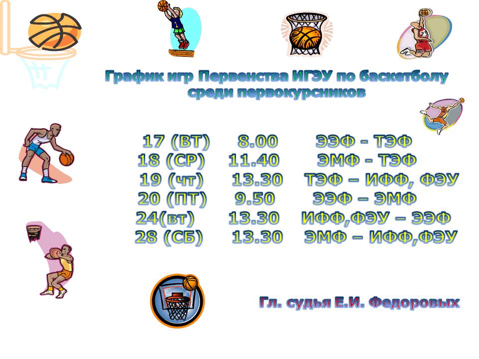 График игр Первенства ИГЭУ по баскетболу среди первокурсников