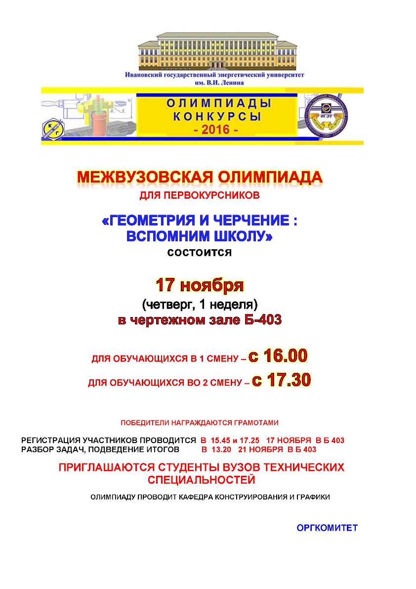 - Международная (Всероссийская) студенческая олимпиада по теоретической и общей электротехнике имени М.О. Доливо-Добровольского, 6-10 апреля 2025 г. (ИГЭУ)