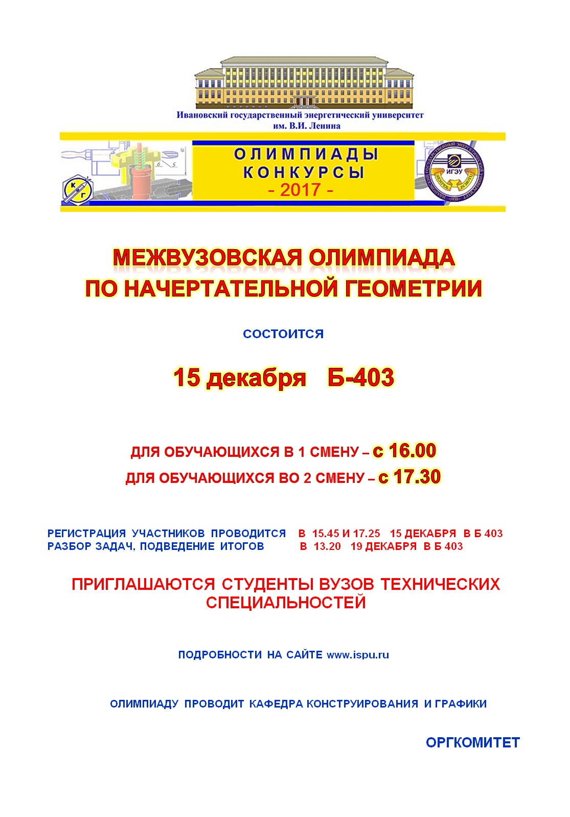 Межвузовская олимпиада по начертательной геометрии, 15 декабря 2017 г. (ИГЭУ, Б-403)