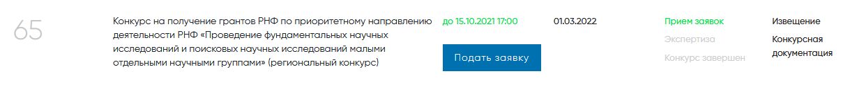 Конкурс на получение грантов РНФ «Проведение фундаментальных научных исследований и поисковых научных исследований малыми отдельными научными группами» (региональный конкурс)