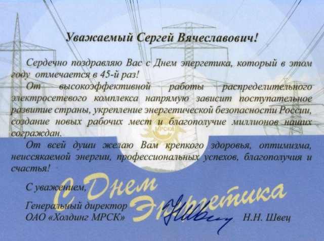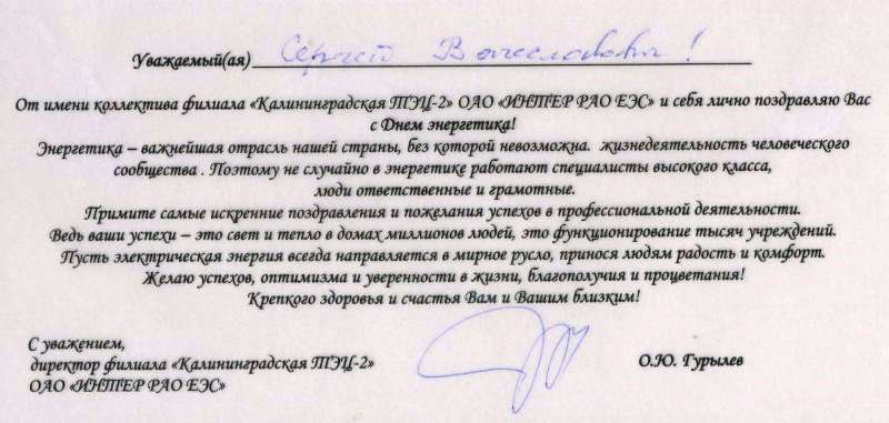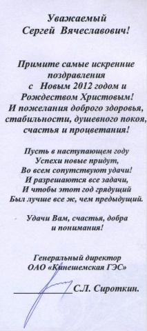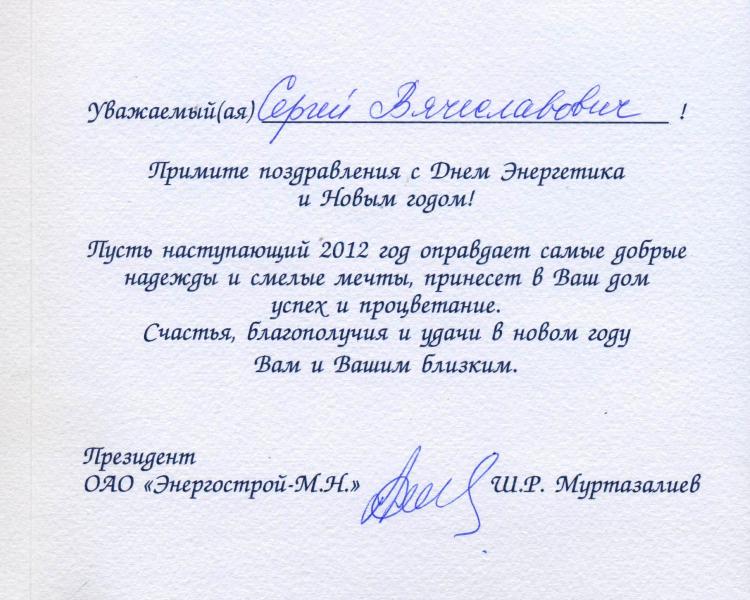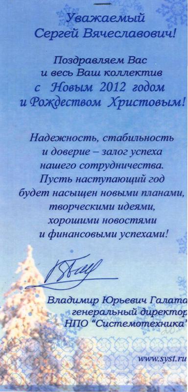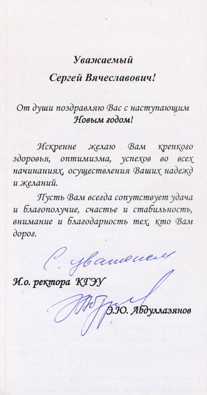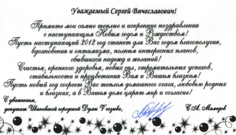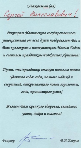 Поздравления с Новым годом, присланные в адрес ректора ИГЭУ С.В. Тарарыкина