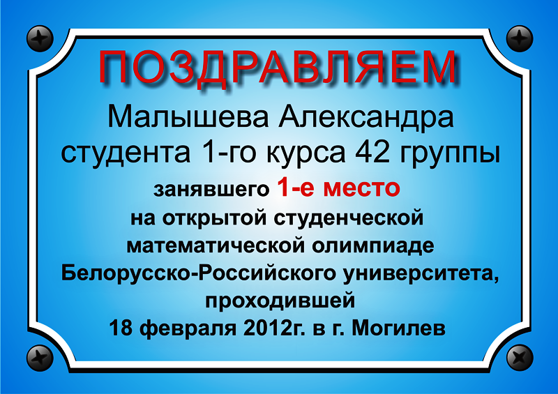 ПОЗДРАВЛЯЕМ Александра МАЛЫШЕВА с победой в математической олимпиаде